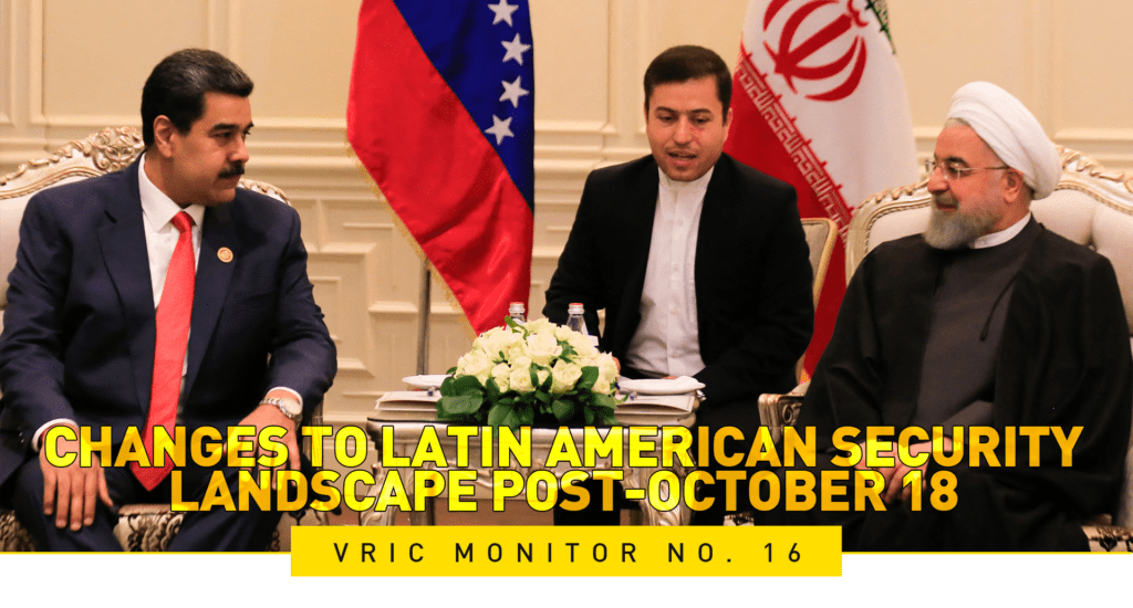 With U.S. elections looming in November, the VRIC may have its own “October surprise” ready after the 18th. Aside from a potential arms transfer from Iran to Venezuela, Maduro’s ally, Evo Morales, may return to Bolivia if his political party, the Movement Toward Socialism (MAS) wins its presidential bid in the first round on October 18th. Chile’s referendum on rewriting its constitution follows shortly after, while Peru, Colombia, Paraguay, Mexico, Central America, and others are facing heightened political turmoil and social unrest. This month is critical to see if the security landscape in the Americas will change.